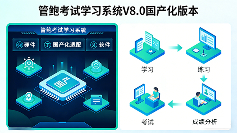 管鲍考试学习系统软件V8.0国产化版本作为全栈信创适配的考试学习平台,不仅实现了软硬件的全国产化替代,